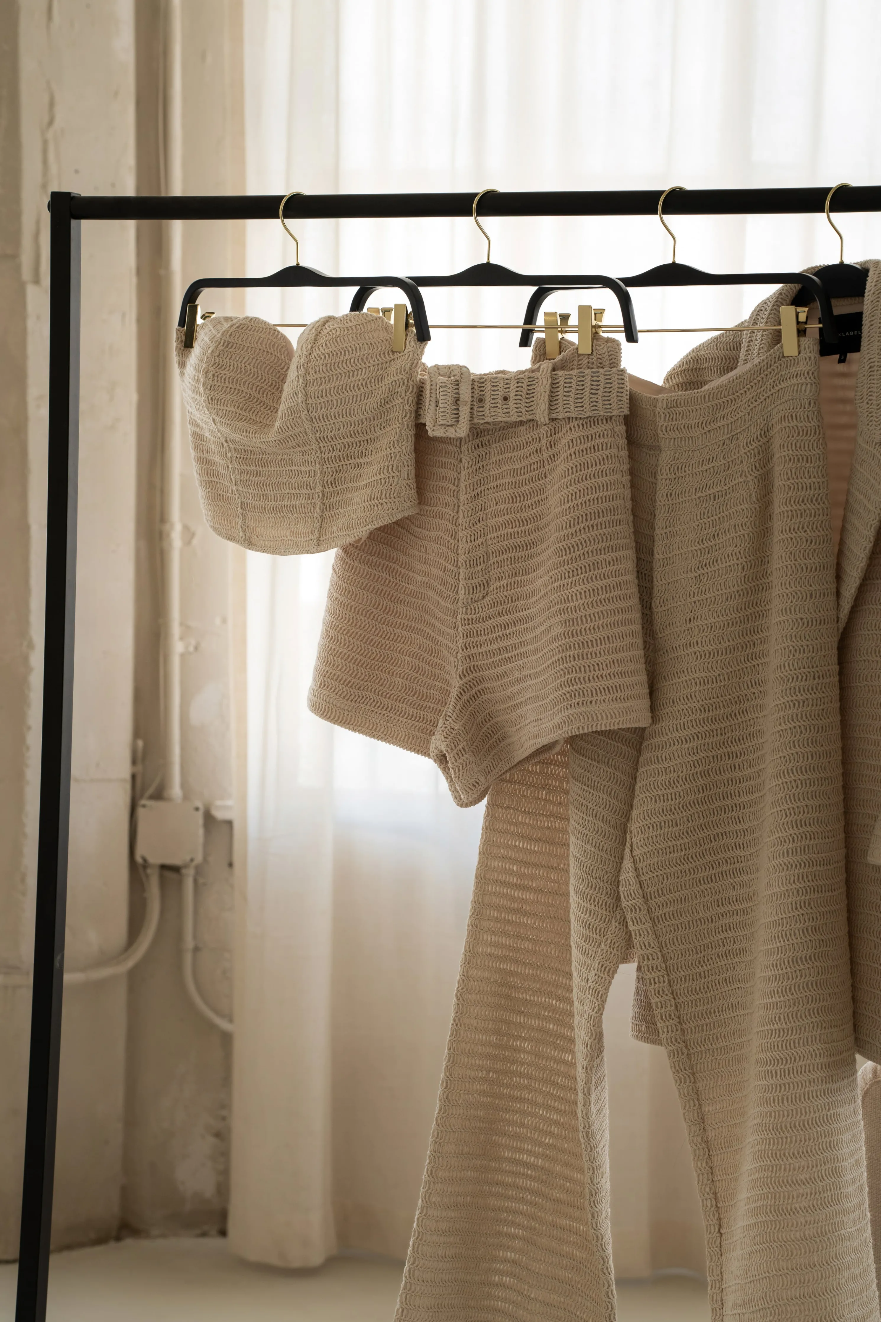 Bring sophisticated style to your next vacation with our Beige Kelsie Belted Shorts. Made with intricately woven crochet material, these shorts are both stylish and comfortable. Featuring a matching square buckle belt with hook and bar zipper closure, and front/back darts, they’re perfect for any occasion. Pair with our Lila Bustier for the full look. No stretch. Double lined.