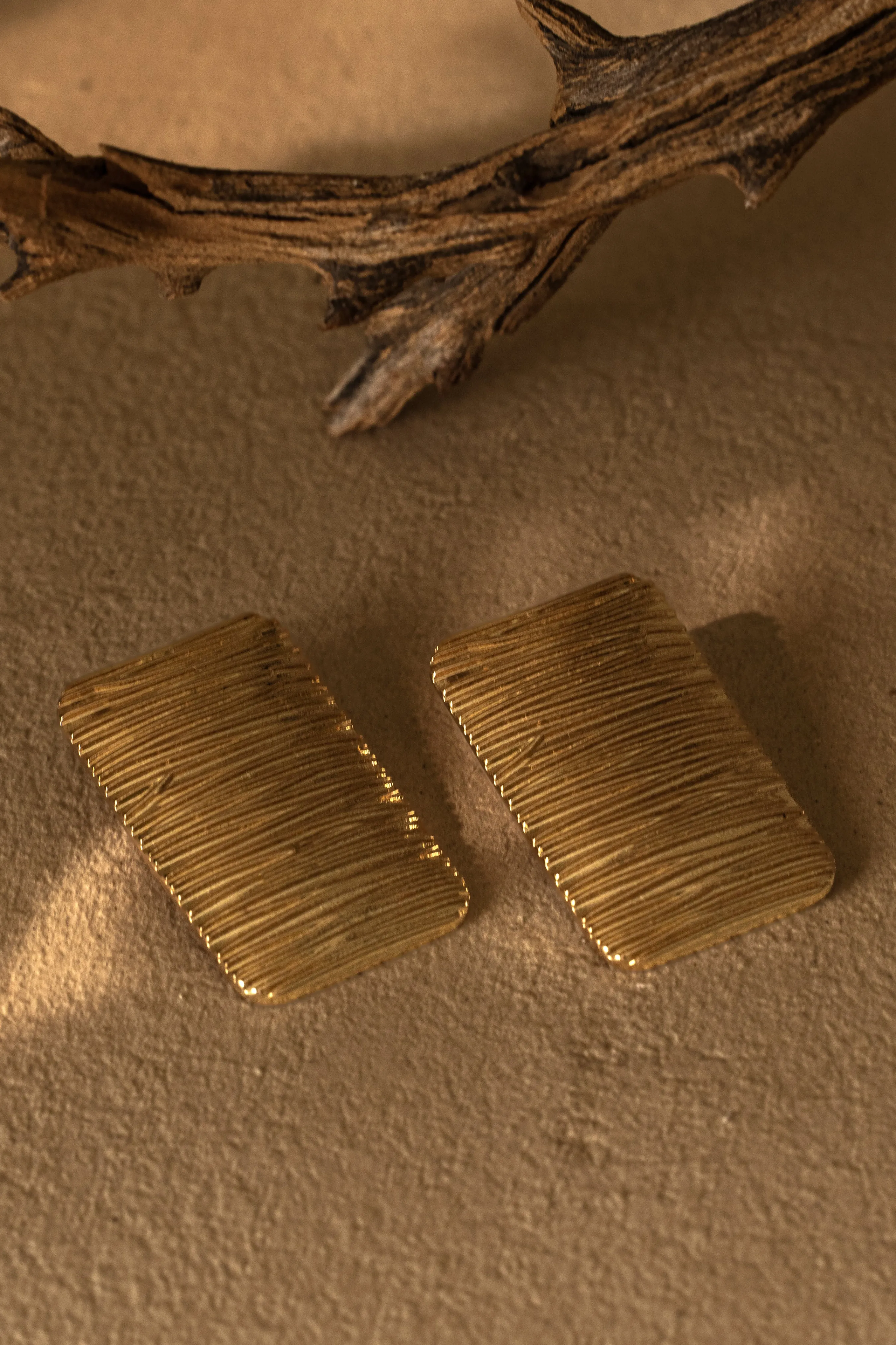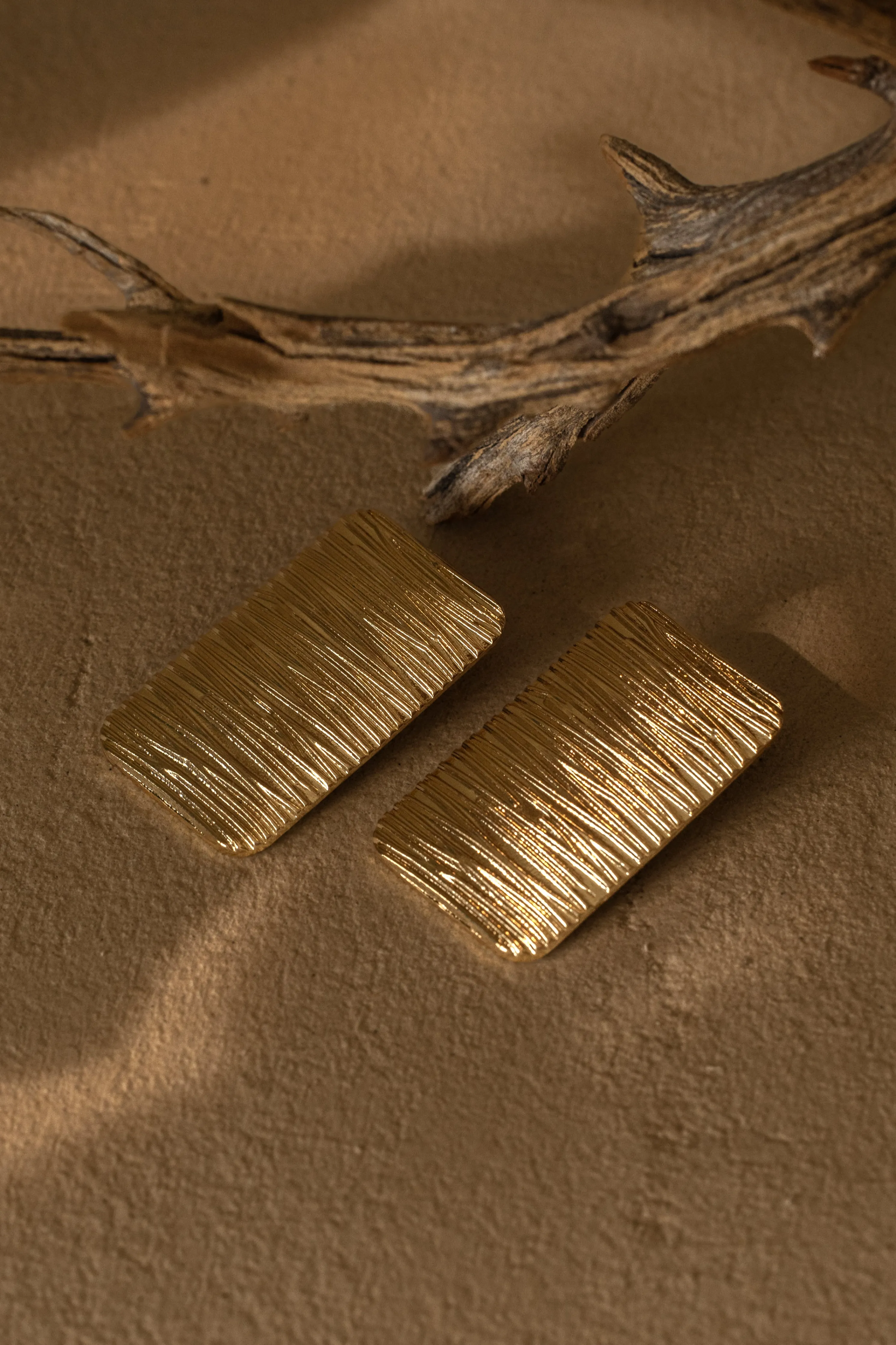 Exuding elegance and grace, our Gold Arin Rectangle Drop Earrings are sure to add a flawless finish to any look! Textured rectangles create a modern statement in this pair of gold tone drop earrings with push back closure.