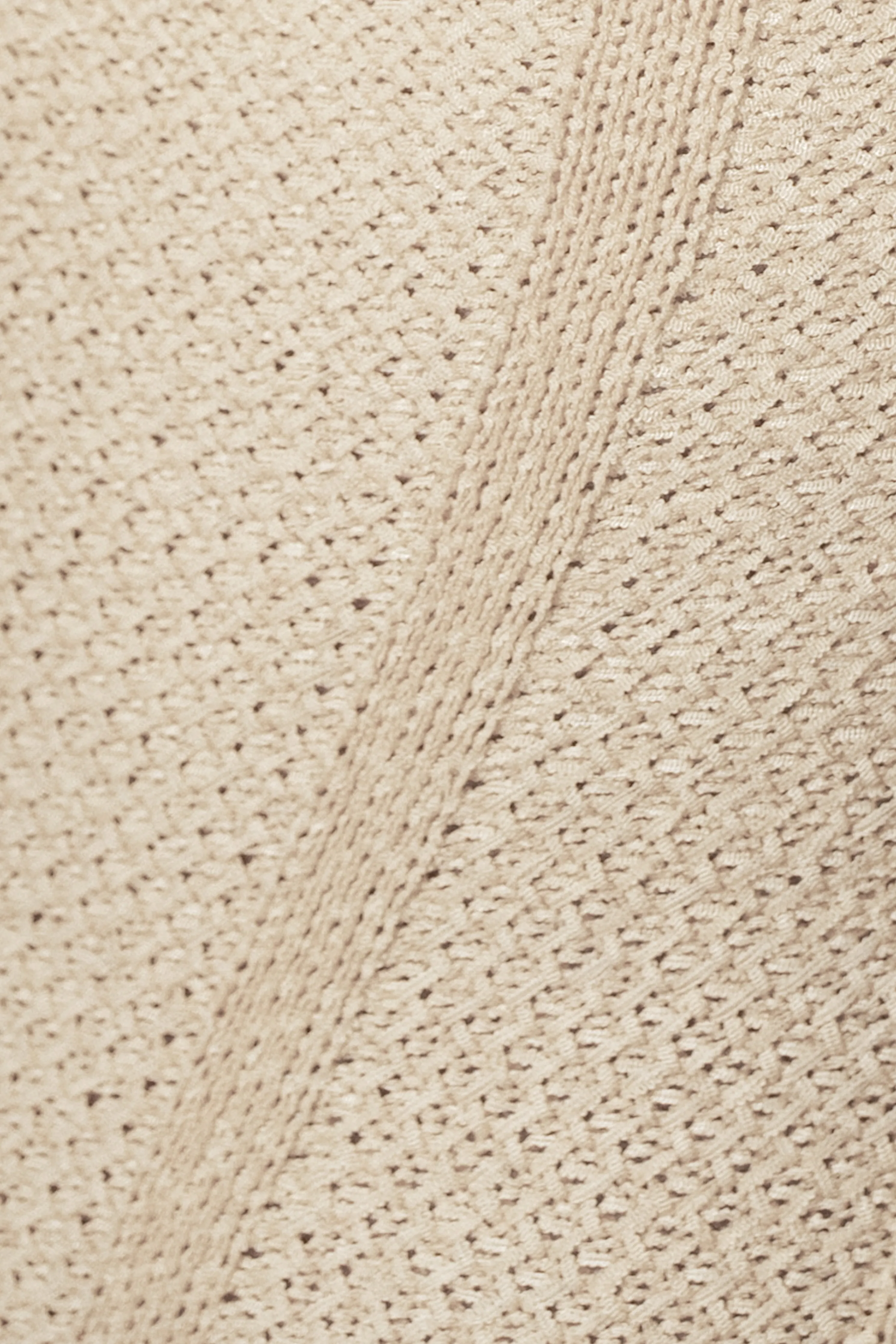 Unwind under the sun with our Ivory Blanca Strapless Maxi Dress. Luxuriously crafted with knit fabric, this maxi dress showcases a strapless neckline with a twist front design, an open back, and multi-way back ties adorned with fringe trims. Stretchy. Single lined.