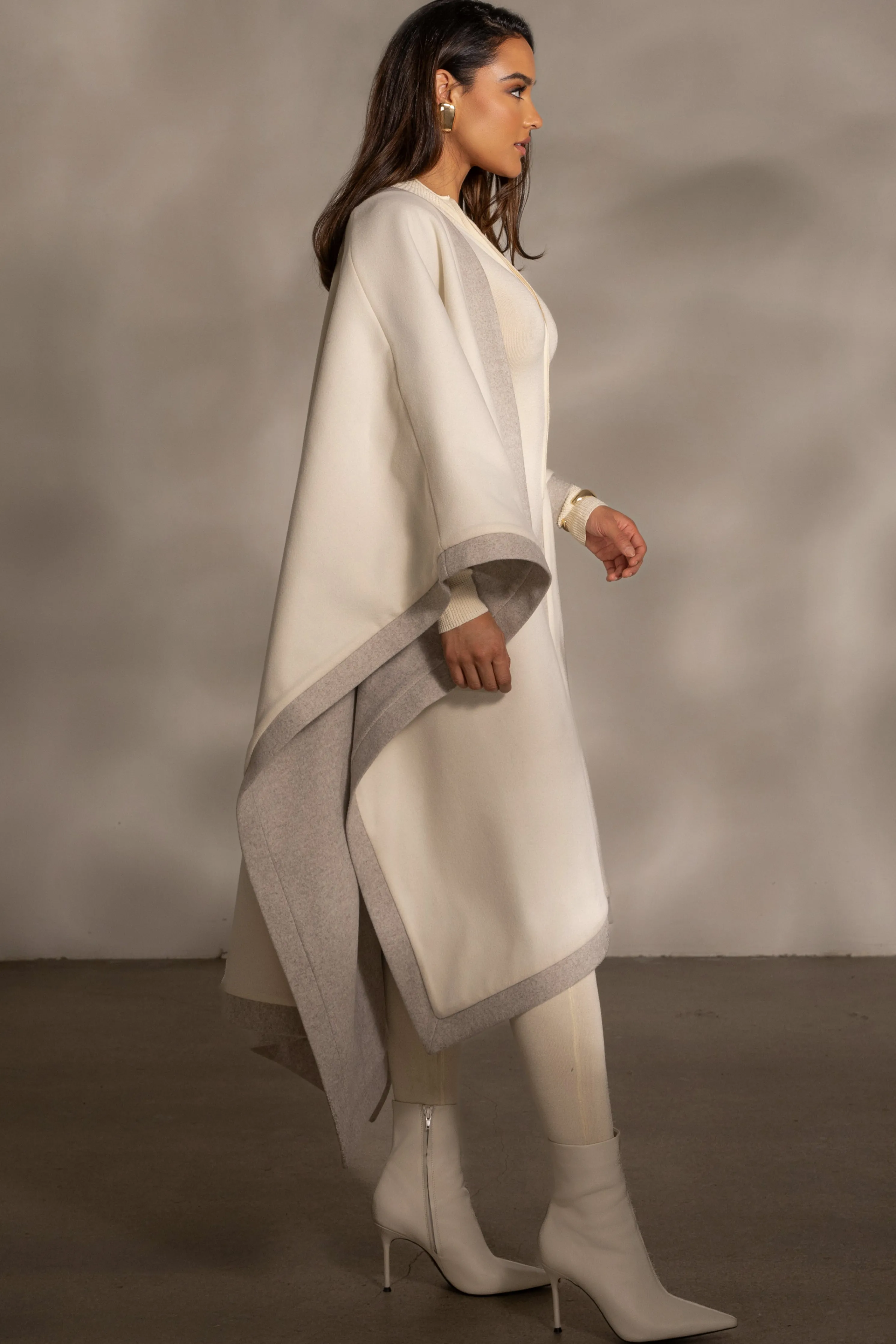 Experience indulgent luxury with our Ivory Park City Reversible Shawl. This reversible shawl is the epitome of comfort and style, offering versatile wearing options with its elegant design. Crafted in a soft touch material ensuring you’re wrapped in warmth all season long. One side offers a heathered oat tone with no contrast trim, The reverse side is featured in Ivory with a a heathered oat tone trim. Oversize.