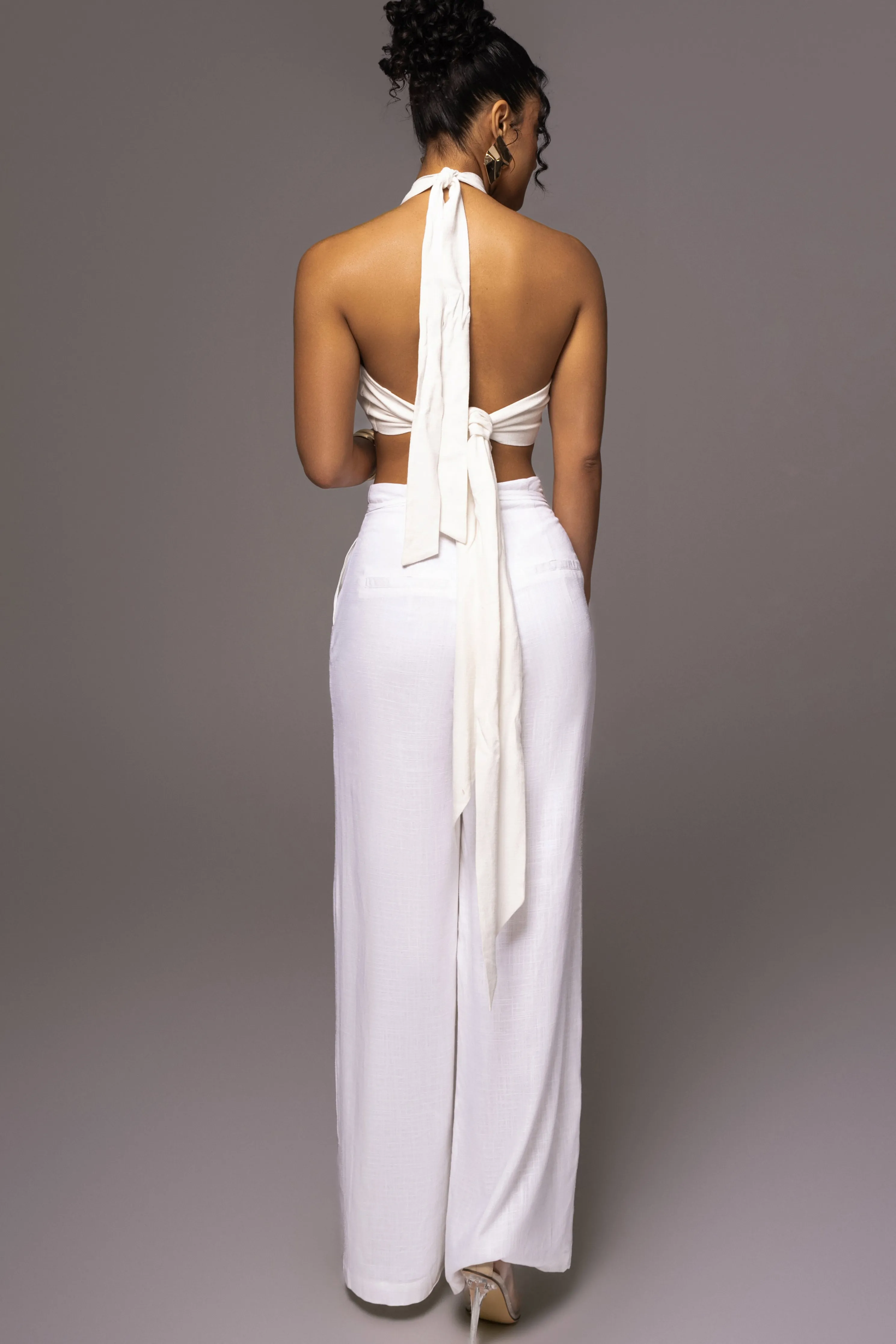 Our Off White Waverly Linen Trousers will become your new go-to! Constructed in a lovely linen fabrication, these airy trousers feature a mid-rise waist detailing pleating at the top with front ties, an interior zipper closure, and wide-leg hems. Complete with functional side pockets and back faux pockets. Pair with our Want It All Crochet