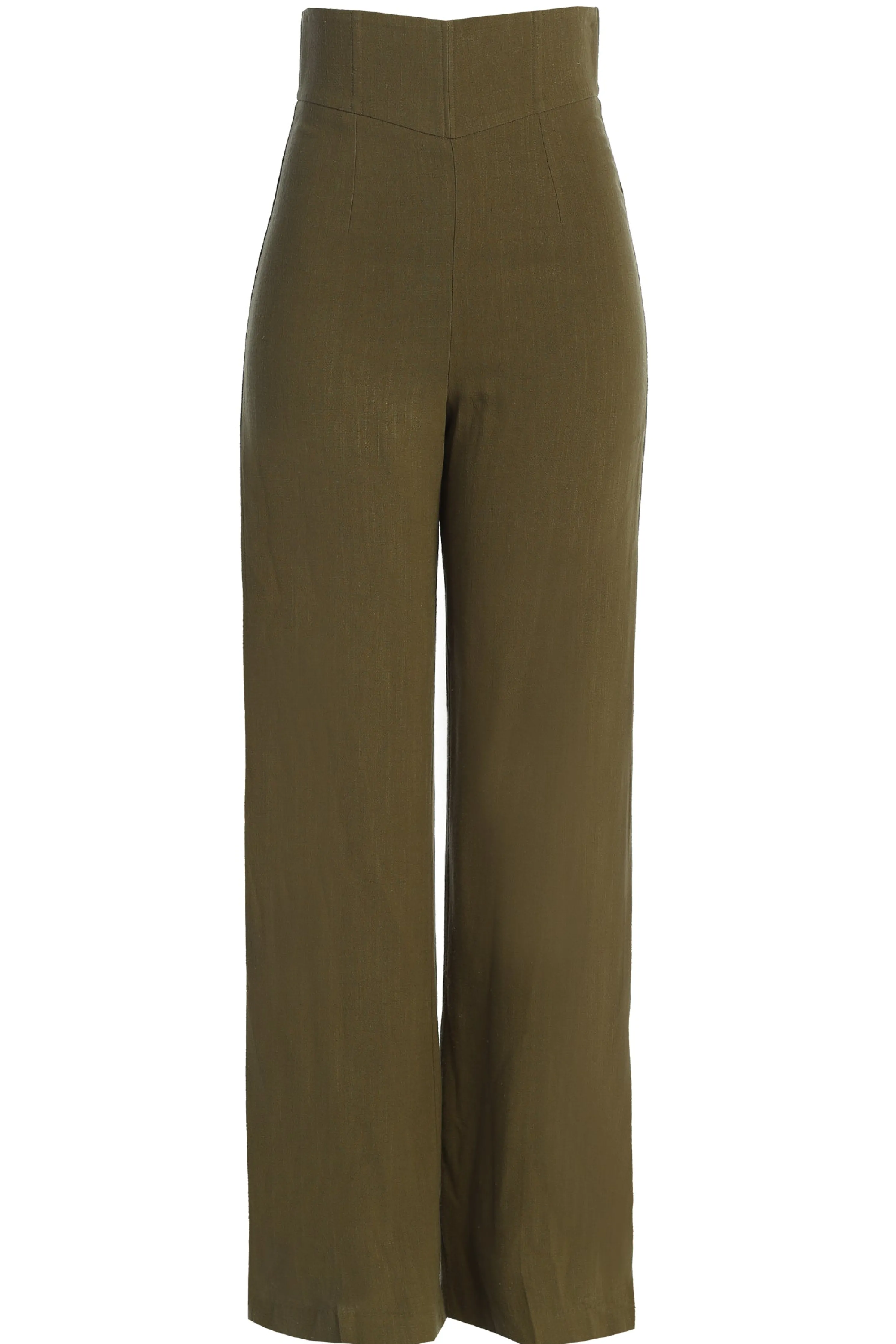 As the sun dips below the horizon, let our Olive Explorer Linen Pants take you from day to night in style. Constructed from a linen blend material, these airy trousers feature a high-waist with stylish boning for structure, straight length hems, and a hidden back zipper closure. No stretch. Double lined.
