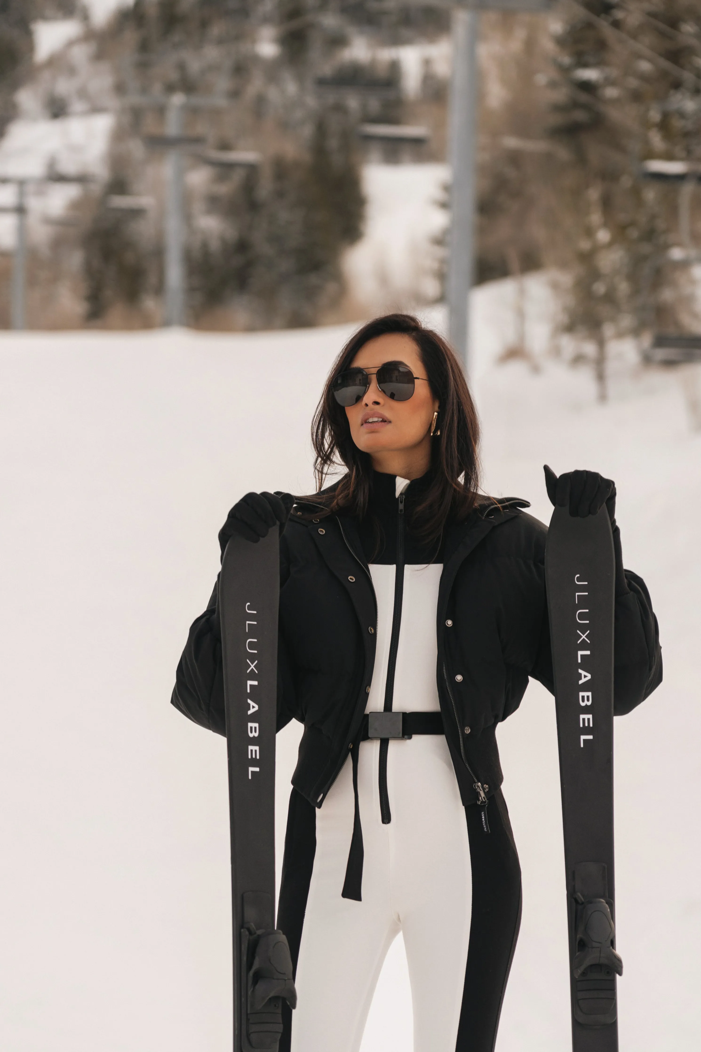 Embrace the unknown with our Black Stassie Ribbed Jacket. Designed for the bold and adventurous, this ribbed puffer jacket features a snap/zipper front closure and functional side pockets with rib detailing throughout for the perfect finishing touch. Layer up with confidence and conquer any challenge in style. Pair with the Arctic Rush Ski Suitfor the full look. Water resistant. Minimal stretch.