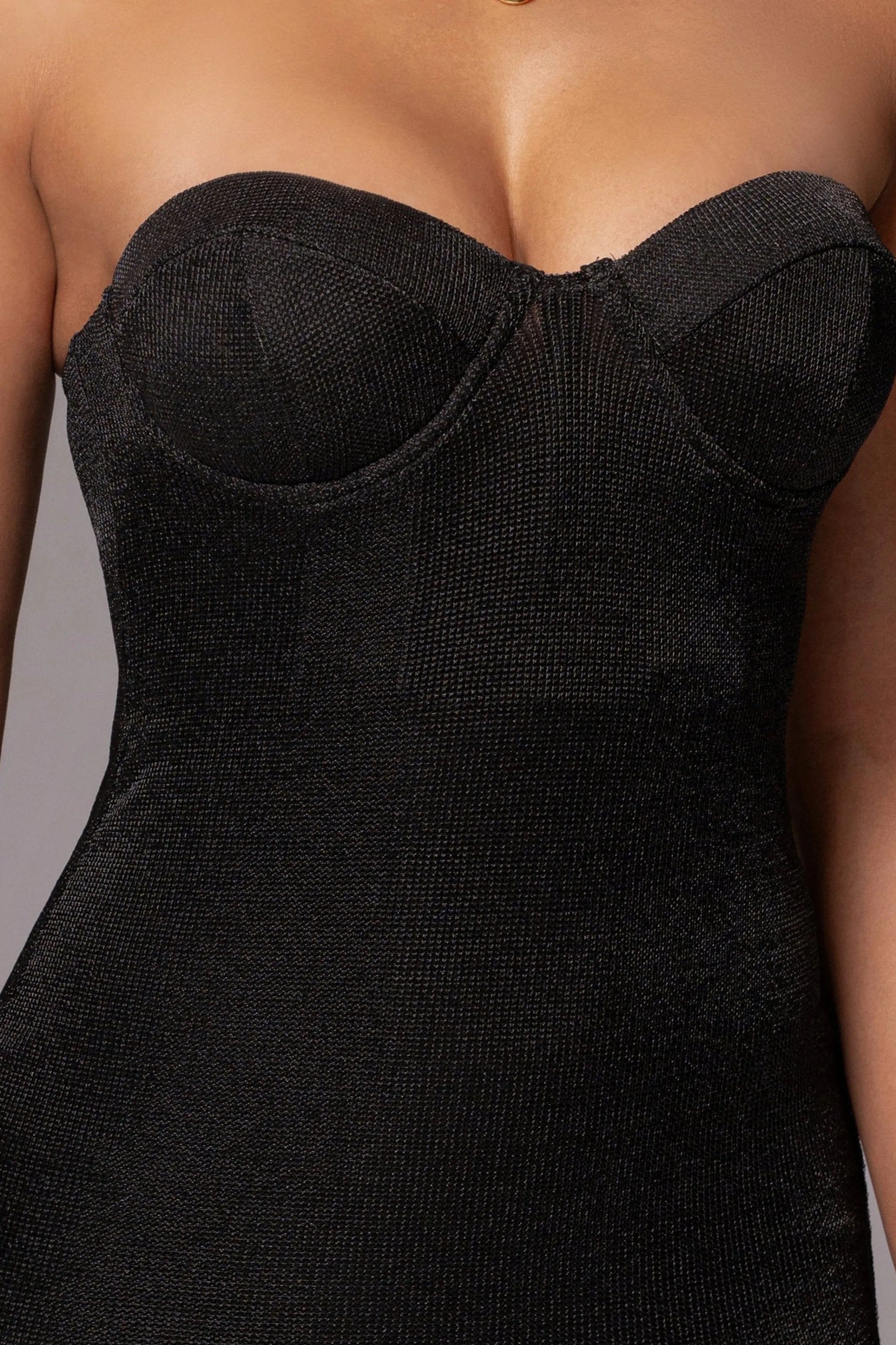 From intimate gatherings to festive soirées, our Black Twilight Elegance Maxi Dress brings timeless glamour to the season. This captivating piece showcases a gleaming metallic chain-net fabric and adjustable, removable shoulder straps, offering versatile styling options. Complete with boning for structure, wired/padded bra cups, and non-slip gel for a secure hold. Gold-tone detachable chain straps add an illuminating effect for a truly stunning look. Double lined. Hidden back zipper closure. Stretchy.