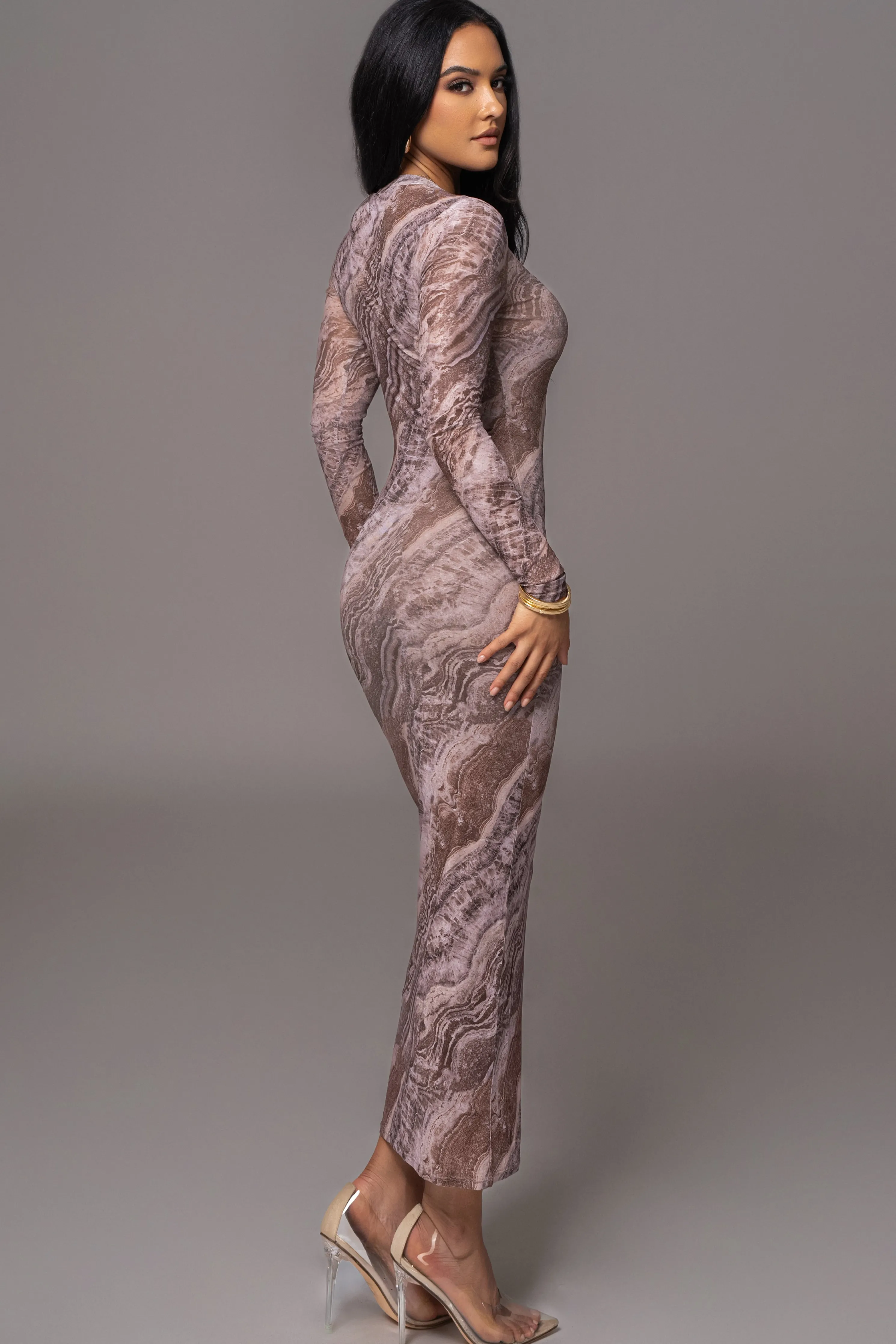 Look your most sophisticated in theBrown Multi Solana Mesh Maxi Dress. This elegant maxi dress is cut from sheer mesh and features long sleeves and a beautiful multi color print enhancing its overall design. Complete with an underlining nude dress for seamless coverage. Stretchy. Double Lined.