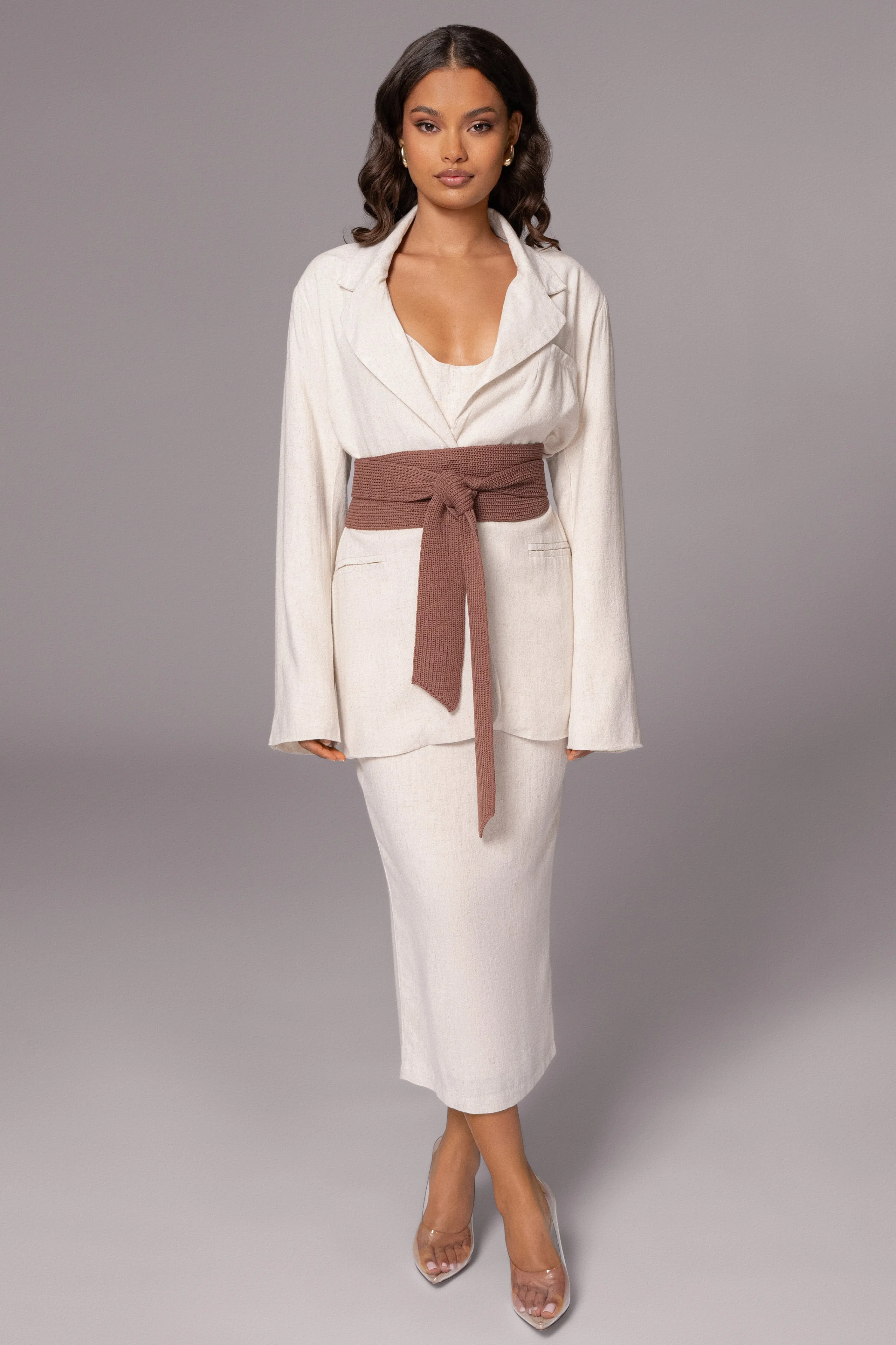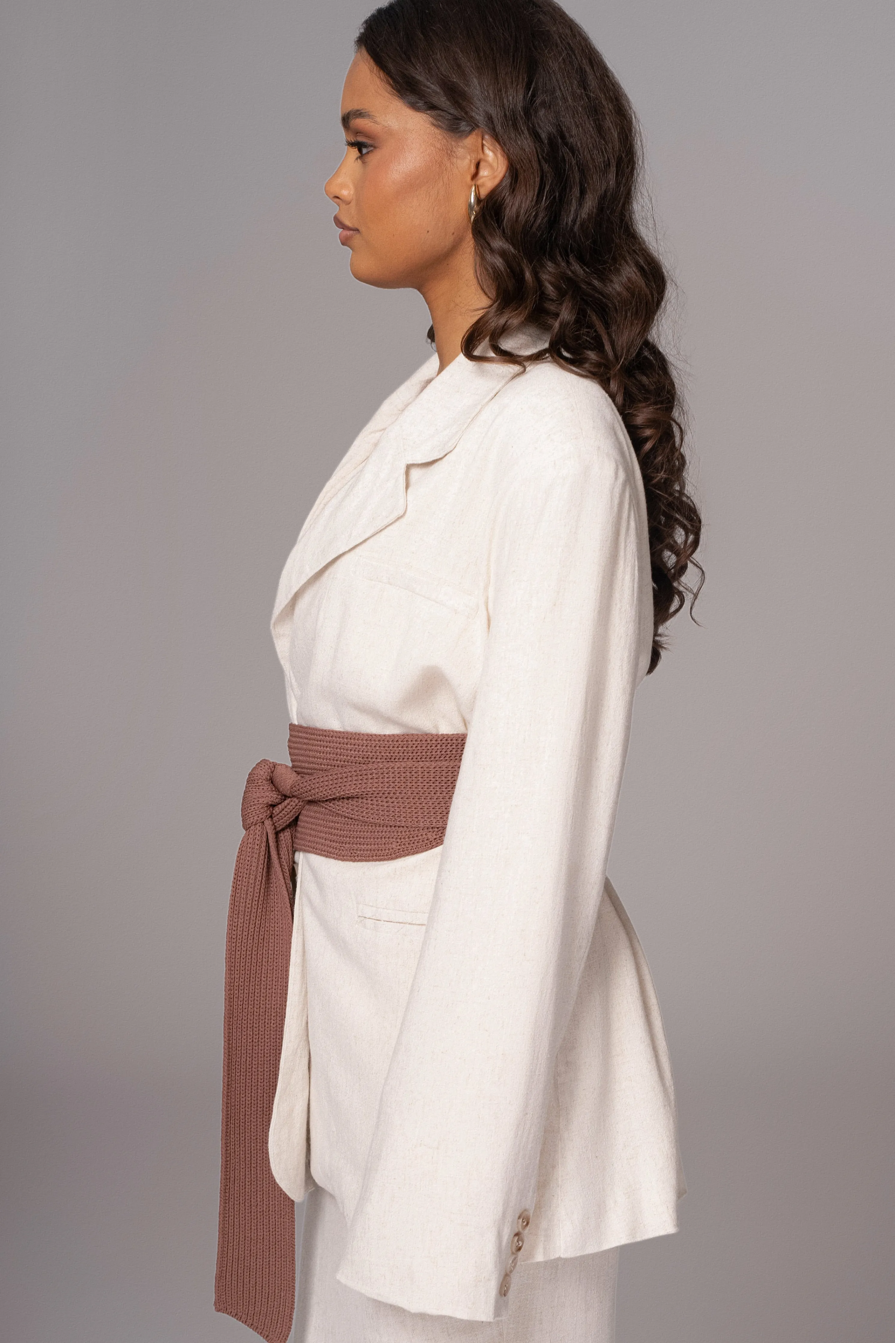 Indulge in the effortless luxury of our Chocolate Lagos Knit Belt. Crafted with a knitted fabric, this versatile belt wraps flawlessly around your waist, creating a draped, sophisticated finish to elevate any ensemble. Stretchy.