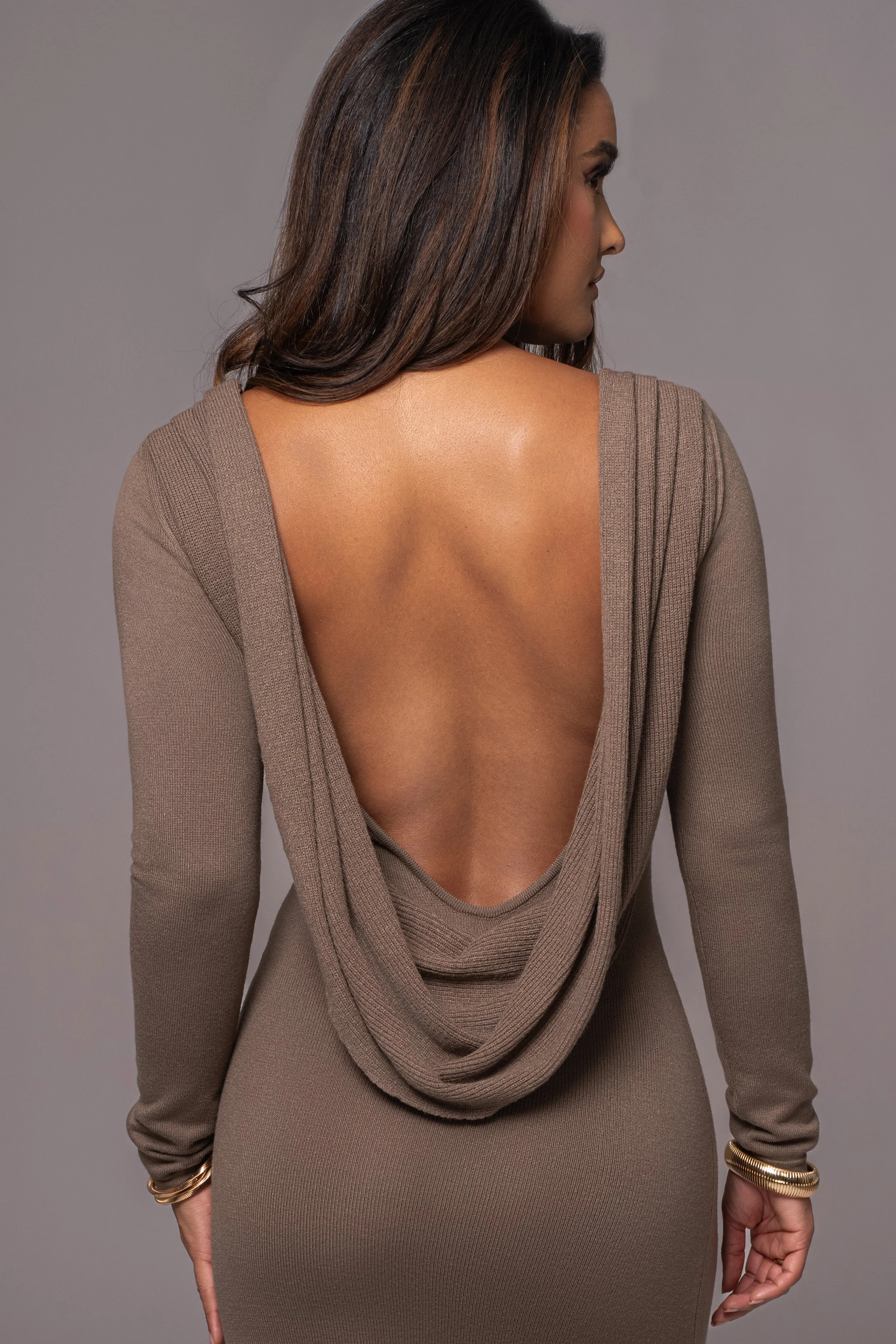 Step out in sophisticated style with our Deep Olive Heavenly Knit Maxi Dress. Crafted with expert attention to detail, this midi dress showcases a stunning draped cowl back with long sleeves and a midi hem lending a classic and tasteful look. Single lined. Stretchy.