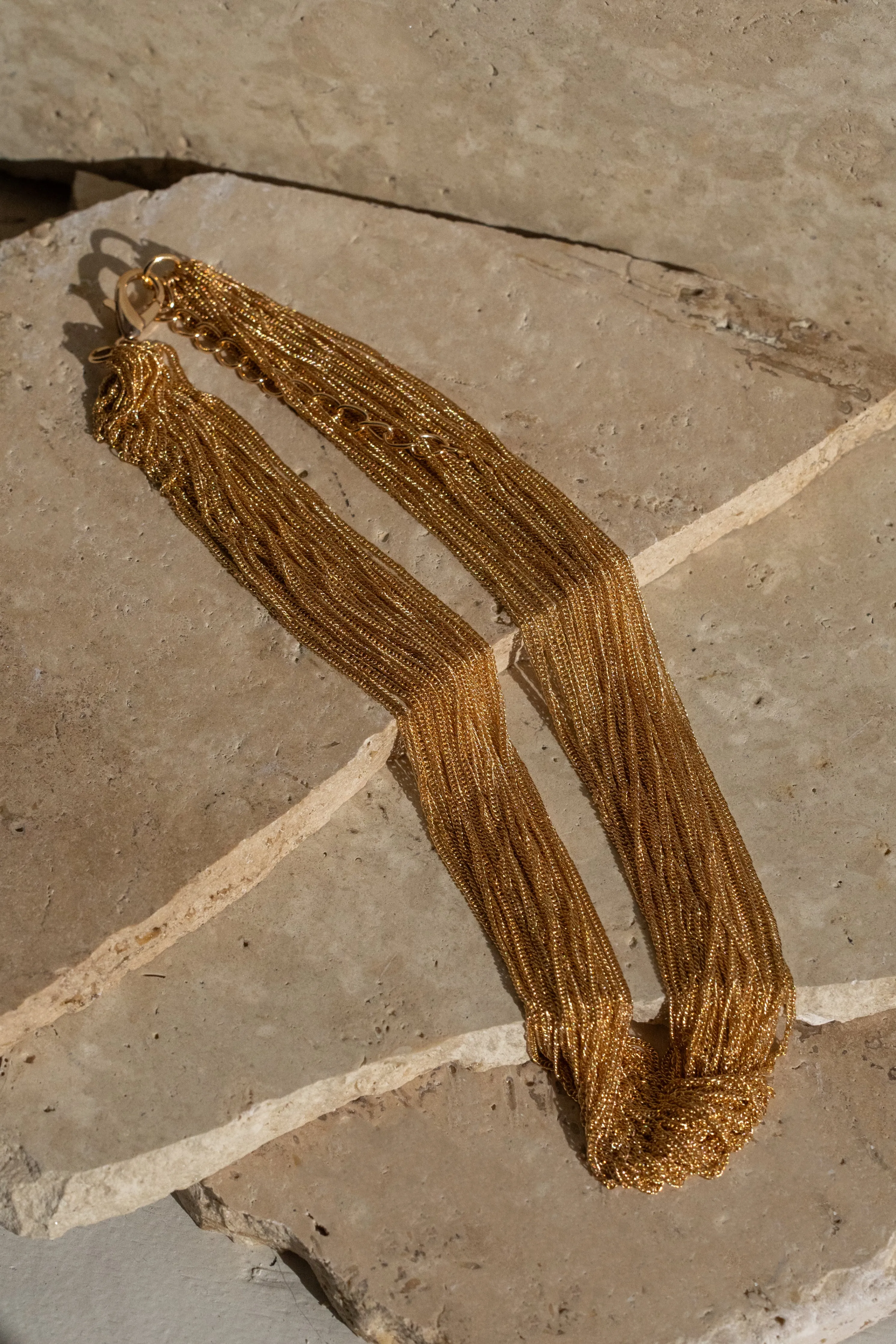 Add a gleamingtouch to yourlook with our Gold Molly Multi Chain Necklace. This captivating necklaceis adorned with shimmering rhinestonesin a multi layer design.Lobster claw closure. Gold-tone hardware.