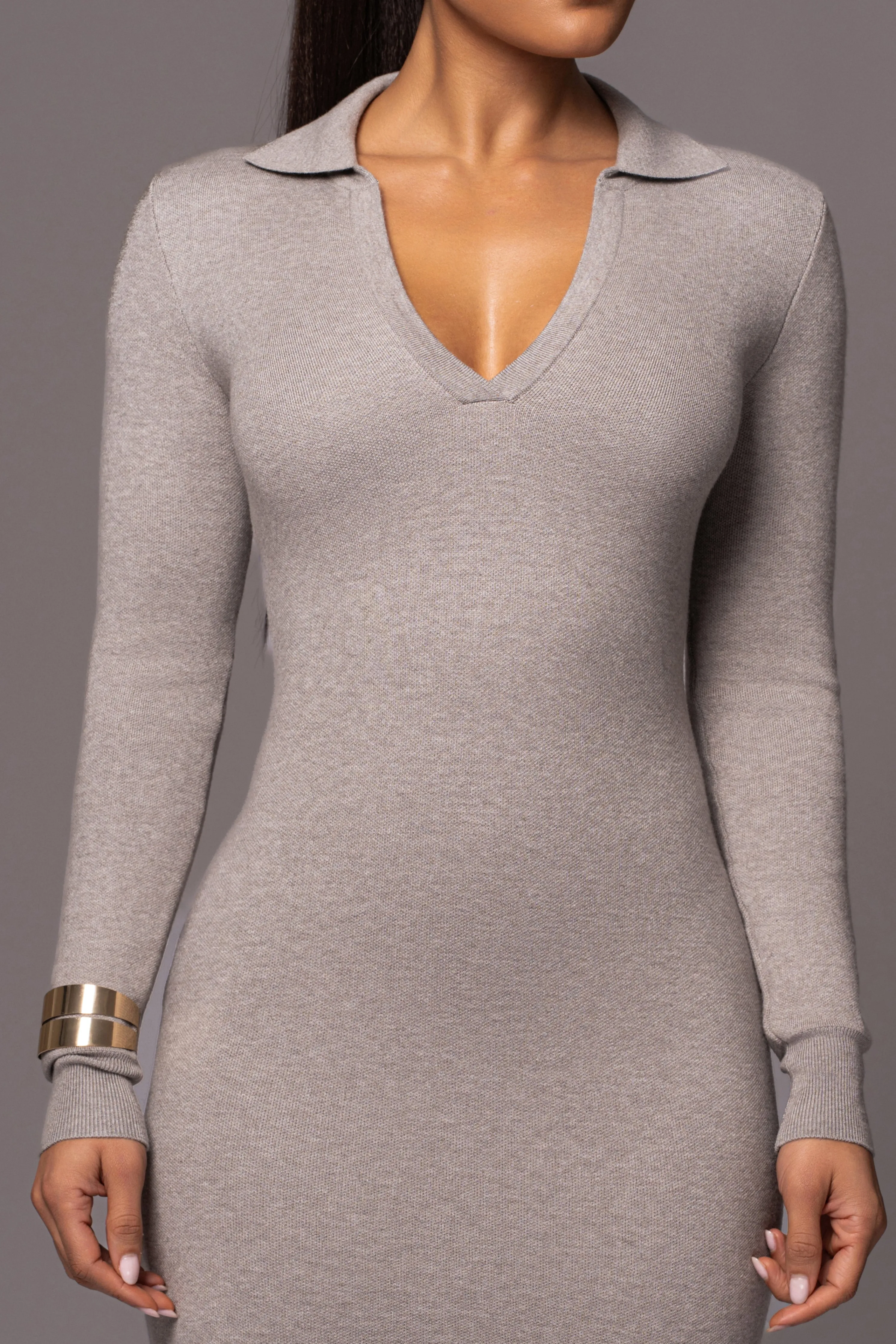Effortlessly stylish and sophisticated, theGrey Bellinda Collar Maxi Dress is a must-have for any time of year. Featuring a collar neckline with low v-neck and long sleeves with fitted cuffs. Crafted in a soft knit material making it perfect for the season. Stretchy. Single lined.