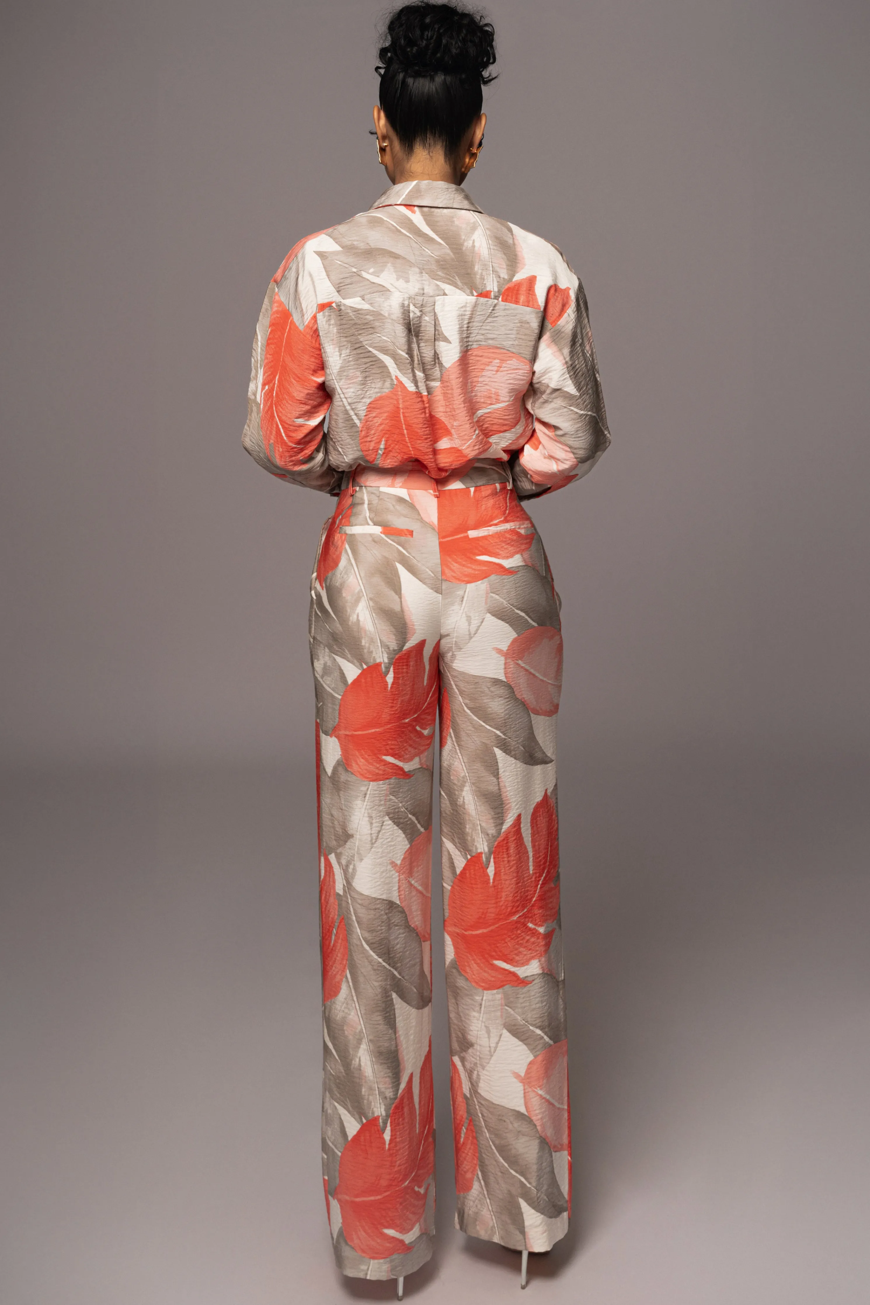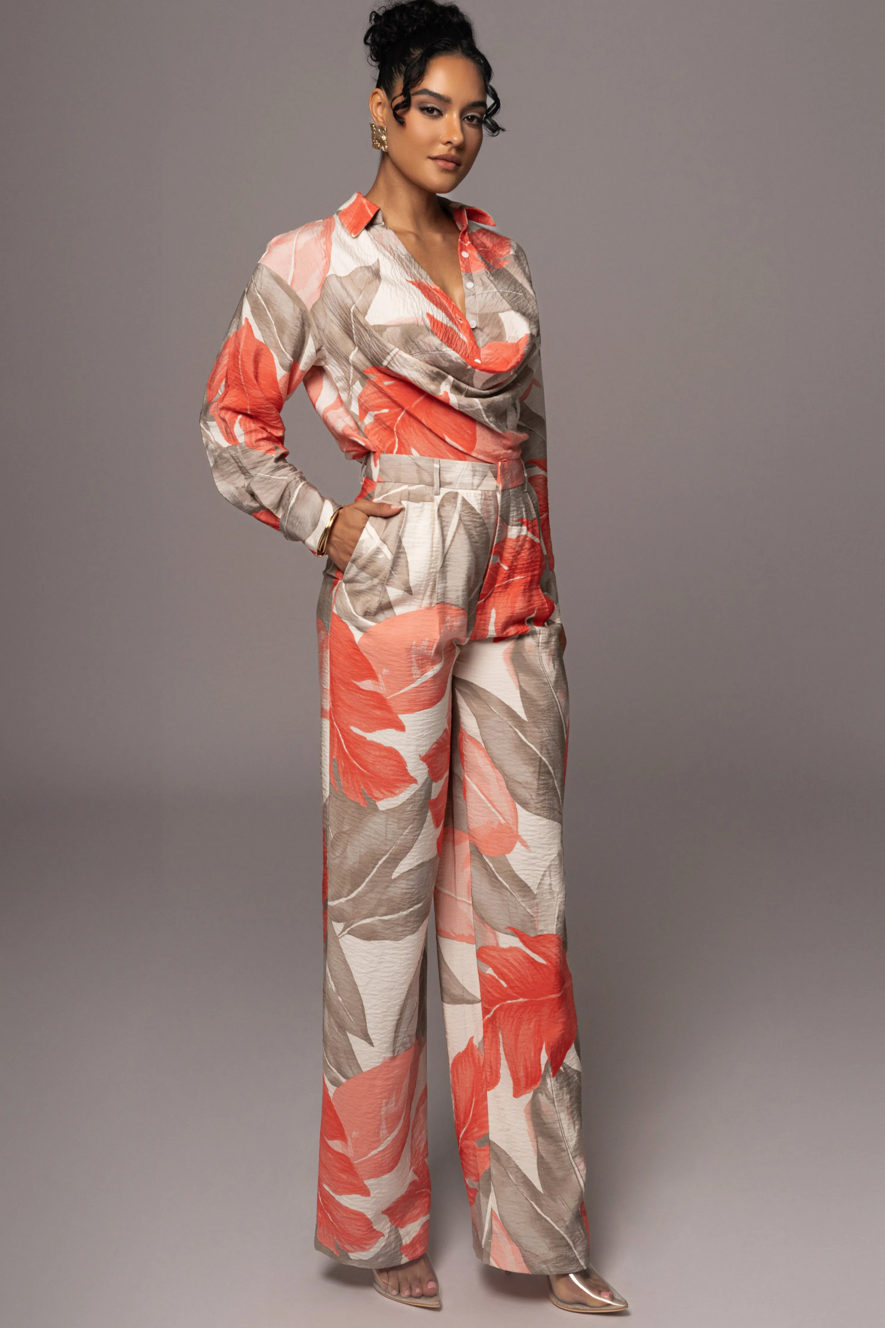 Bring on Summer with our Ivory Palm Print Drew Crinkled Trousers. These straight-leg trousers are made from lightweight, crinkled fabric in a tropical floral print adding a delicate summer touch. Featuring front pleating with a clasp and zipper closure, functional side pockets, belt loops, and faux welt pockets. Pair with our Greta Collared Top for the full look. Internal waist button. Lined interior. No stretch.