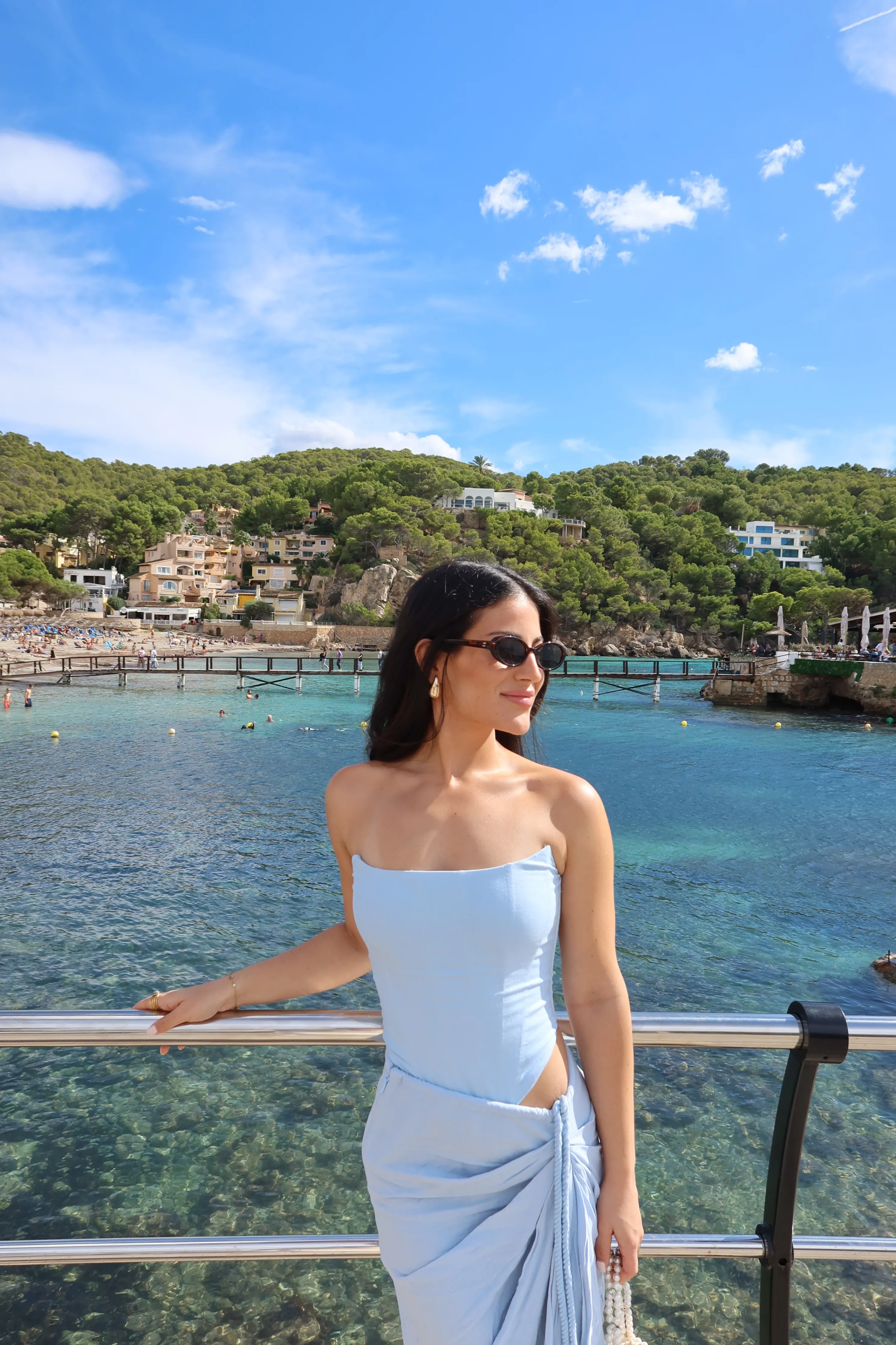Draped to perfection proving life’s better in linen with our, Sky Blue Noelia Linen Slit Skirt. Crafted in a fresh linen material, this maxi skirt features a drape design with a stylish rope drawstring and a slit on the side. Hidden side zipper for closure. Pair with our FENIX LINEN CORSET for a full look. No stretch. Single lined.